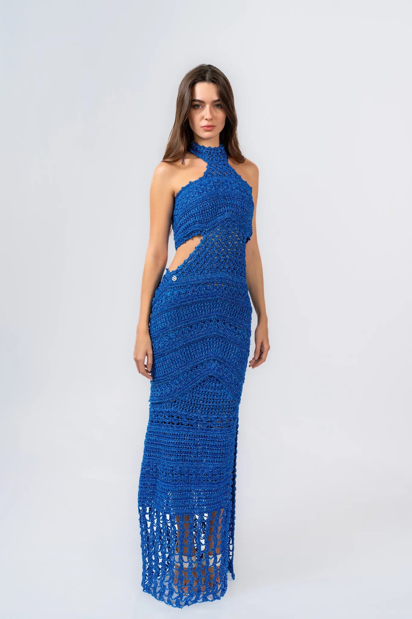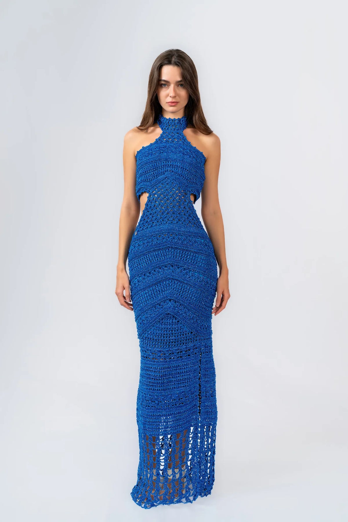 Imposing like the force of the incoming tide, this dress exudes pure presence. High Tide is a long crochet dress, handcrafted with 100% polypropylene yarn and delicate silver thread interspersed throughout, lending the piece a subtle and sophisticated shine.