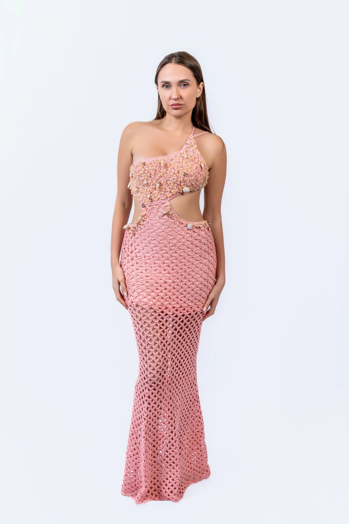 Delicate as a collection of sea treasures and striking as a living work of art, the Shell Path dress is made for women who leave their mark wherever they go.